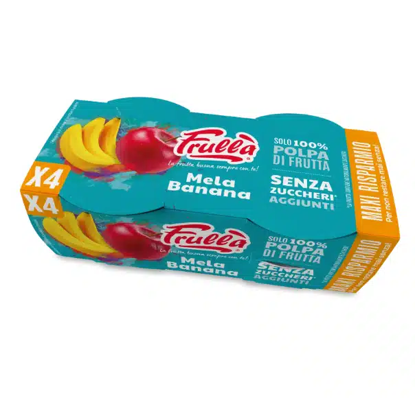 100% polpa di frutta fresca, in cui il gusto della mela si unisce a quello della pera. Confezionata in comode vaschette di alluminio da 100gr, completamente riciclabili. Nel formato 4X100g. Naturalmente senza glutine.